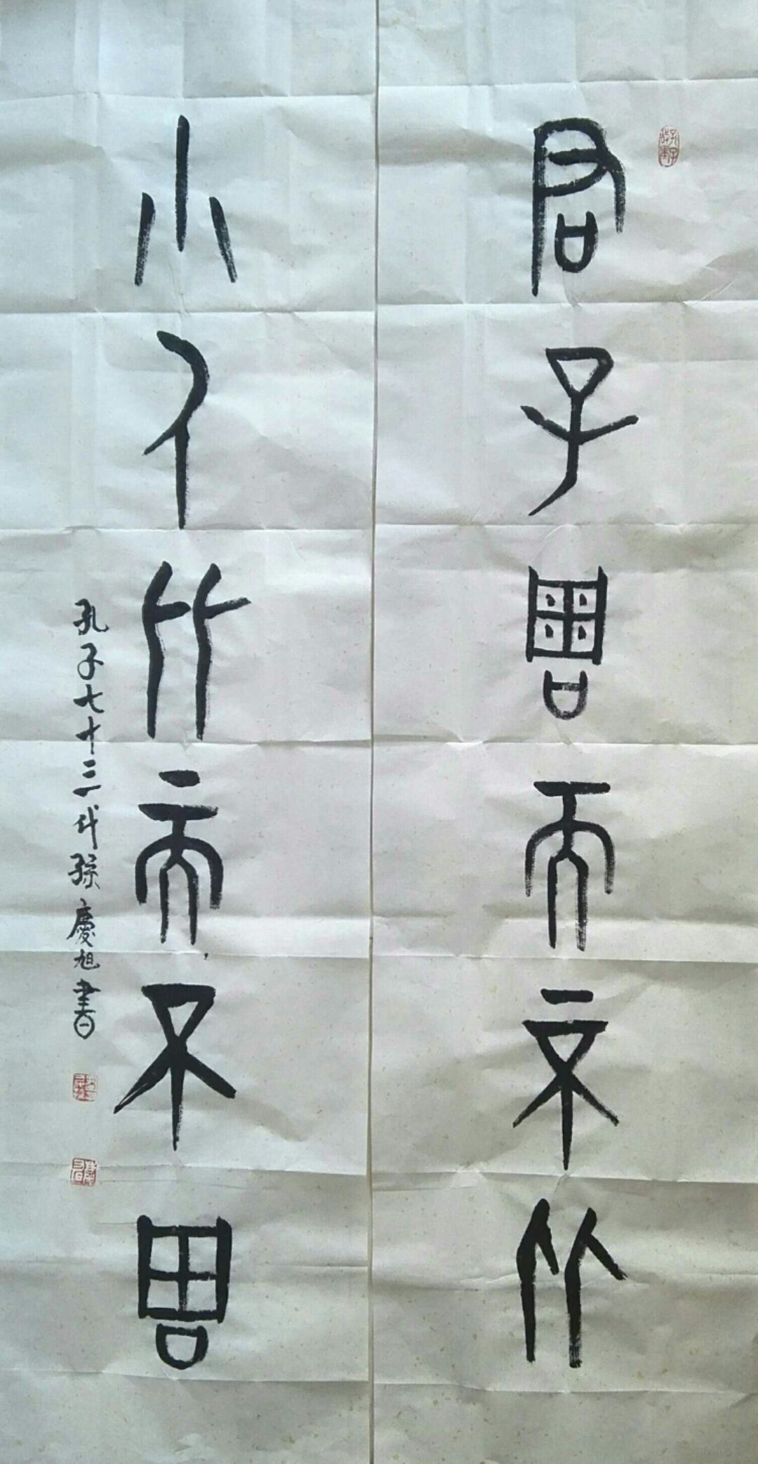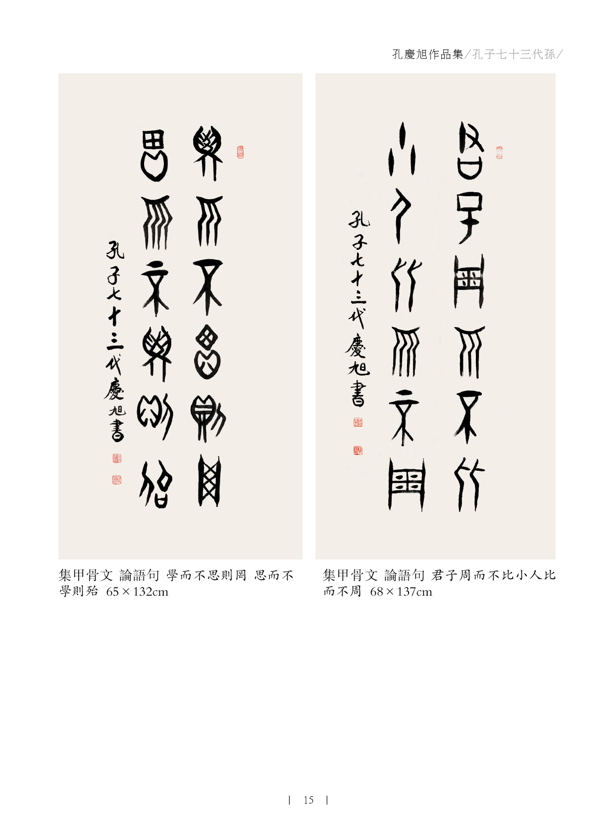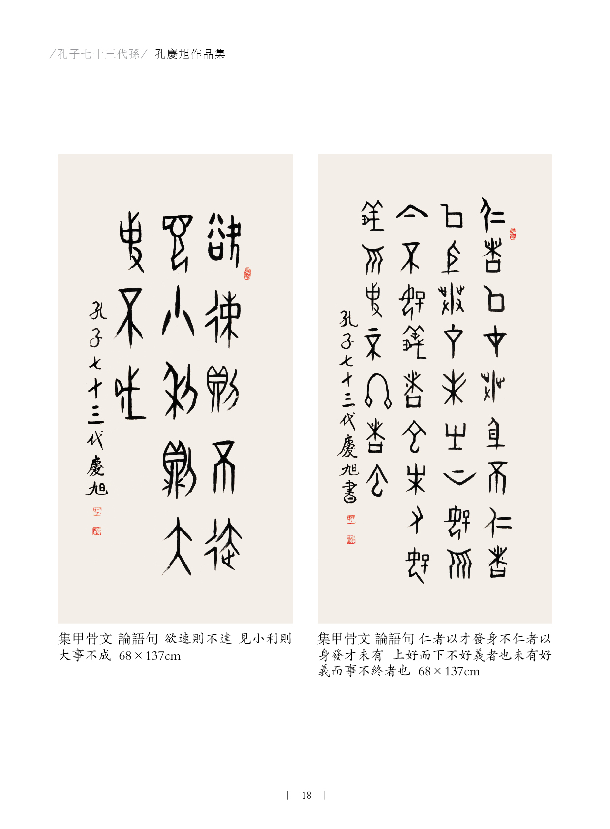 孔庆旭,男,1946年生,山东曲阜市孔子后裔第七十三代嫡孙。中国孔子书画家协会、中国孔子书画研究院、中国孔子收藏家协会主要创建人。现任中国孔子书画家协会主席、中国孔子书画研究院院长、中国孔子收藏家协会会长、中国孔子书画报社长。现为文化旅游部国家一级美术师,中国文化传播大使,中国文化艺术人才管理中心一级书法师。中国文化艺术界联合会特聘您为中国书法家协会理事职务。