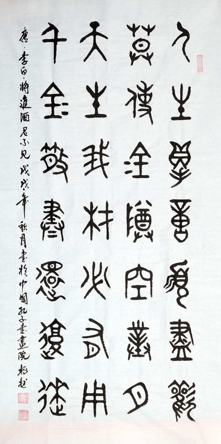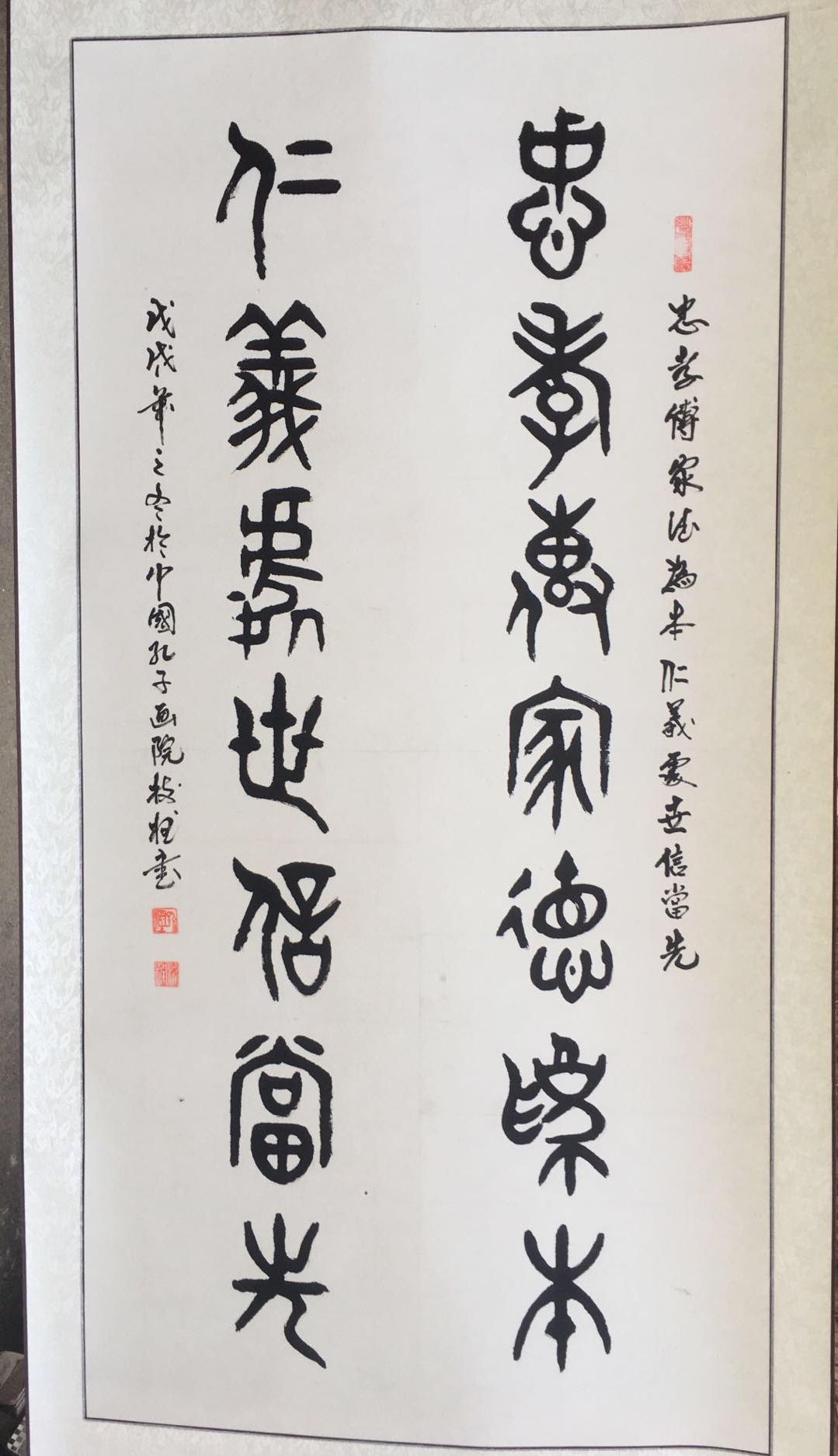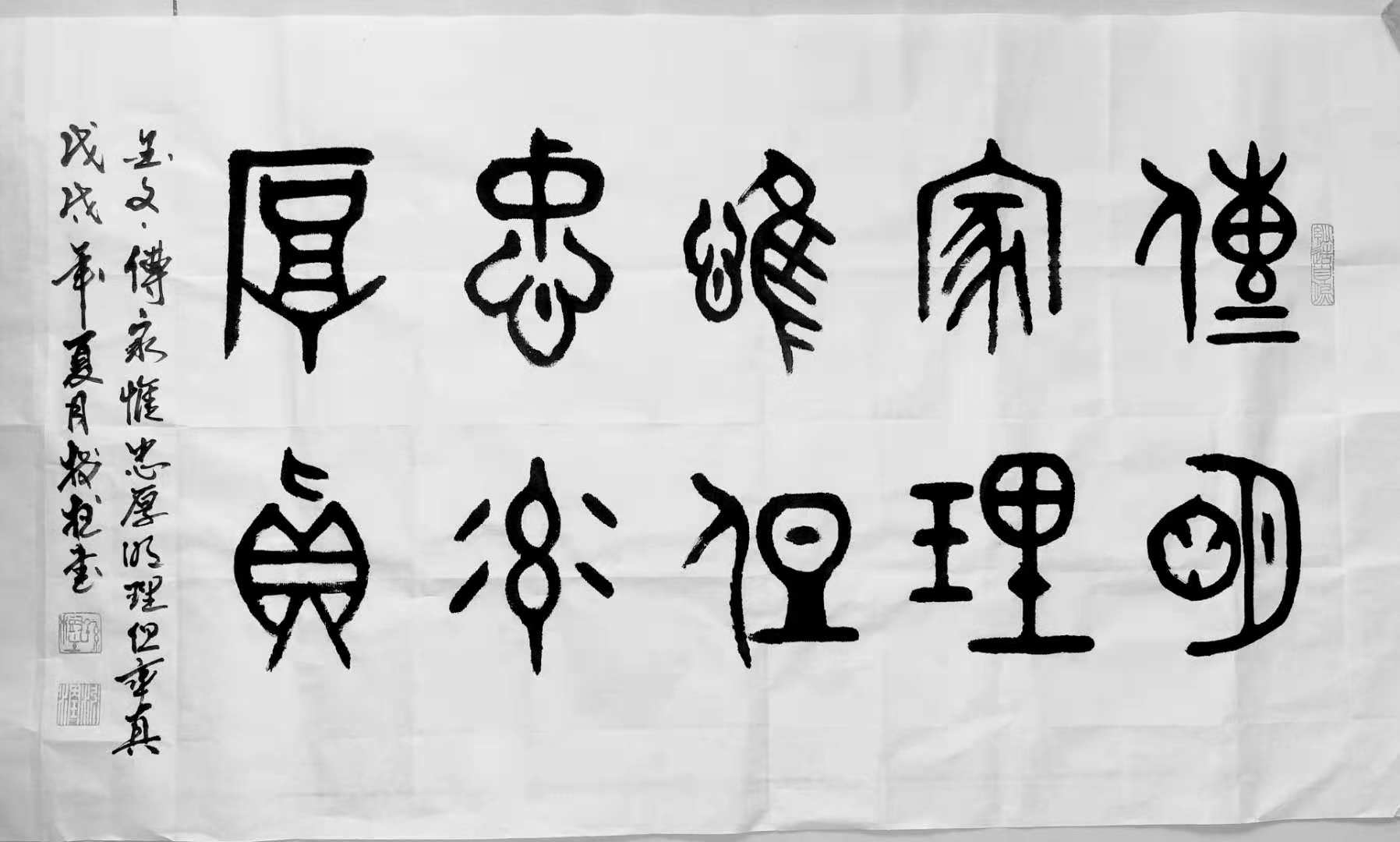 其优秀作品被旅游名胜地一一大灵岩寺及中共山东省委党校珍藏。 2017年应邀为《华夏母亲之都嫘祖故里盐亭》书写五百字的金文碑文。